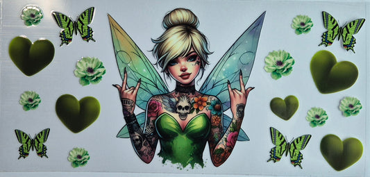 Disney Tinkerbell Green Hearts Tattoo Girl