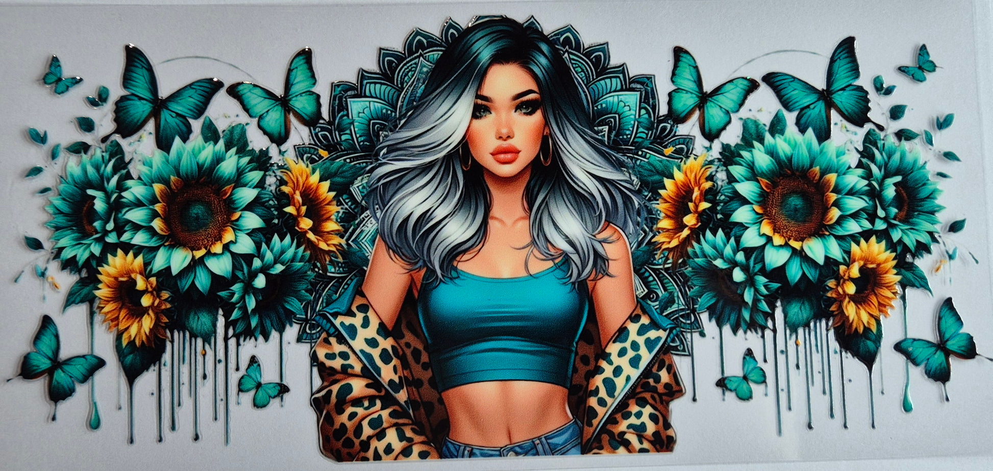 Girl Aqua Flowers Butterflies Mandala