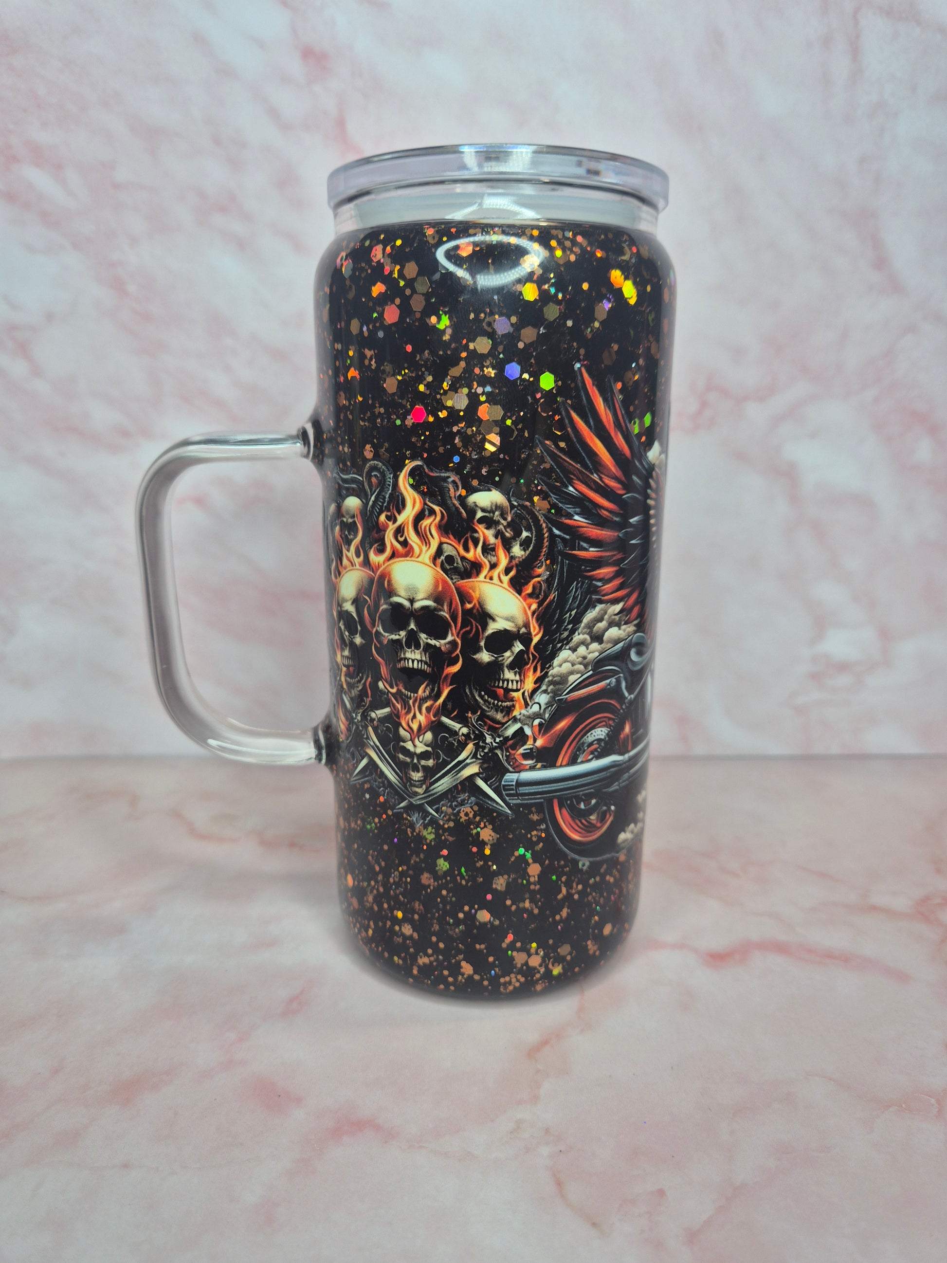 16oz tall glass handle, ready to be shipped