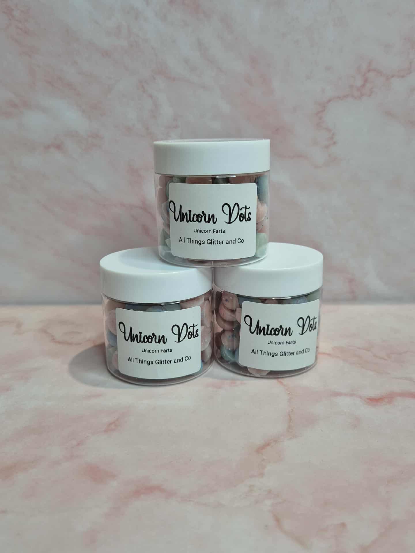 A playful blend of pink, blue, and purple dots, made from a high-performance soy blend wax. Scented with the fun and whimsical fragrance Unicorn Farts, these melts are perfect for adding a touch of magic and sweetness to your space. Each dot slowly releases its fragrance, filling the room with a delightful aroma while adding a pop of colorful charm to your melt collection. ✨🦄